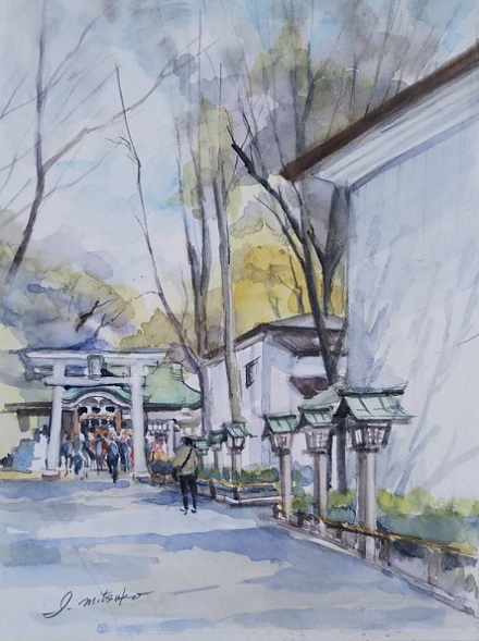 石鍋 充子 『石切さん お百度参り』 水彩画