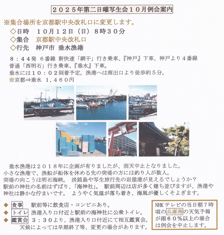 ◎10月例会案内 神戸市 垂水漁港 ※集合場所を変更します。