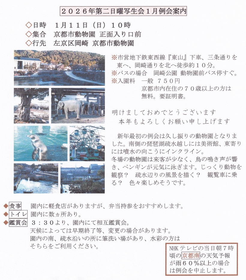 ◎2026年1月例会案内 左京区岡崎 京都市動物園